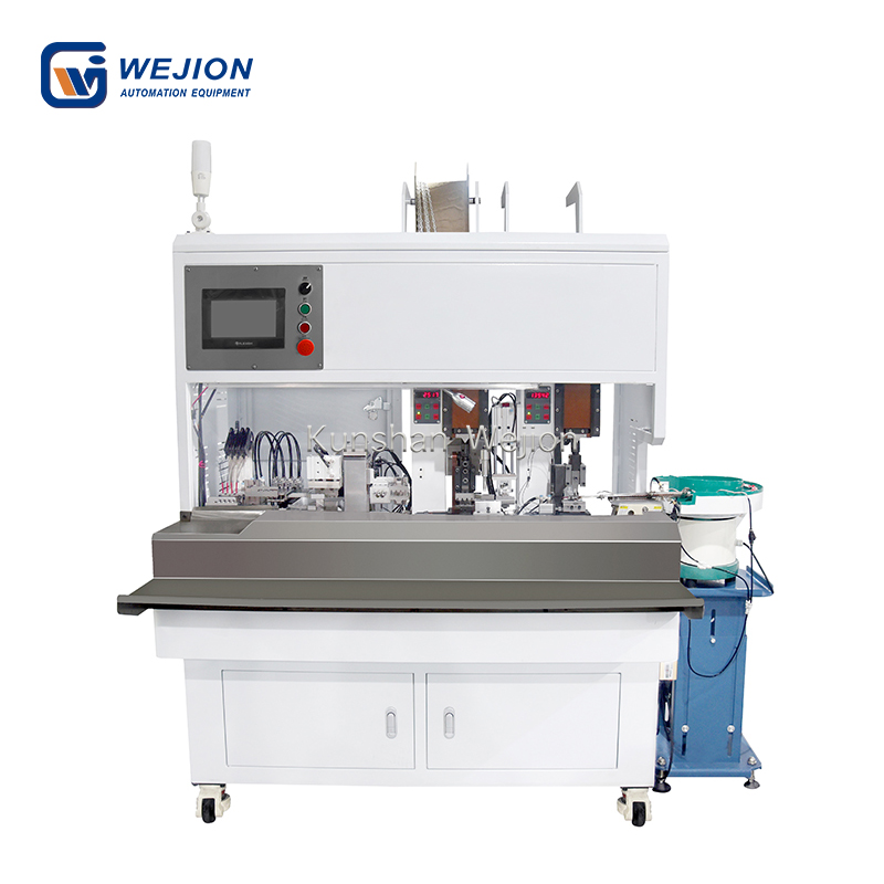 这是一种半自动剥线和压接机。可加工3芯、4芯电源线带及端子压接。本机可处理长度不一的线材。长度差为0-200mm。它还可以将不同的端子同时压接到不同的芯线上。
