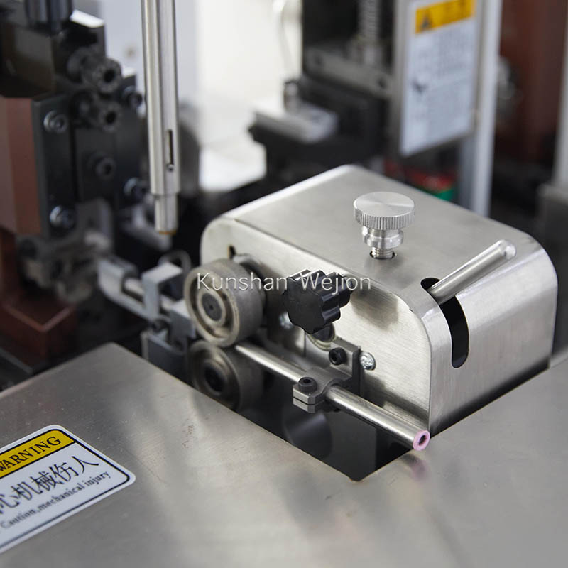 1.本机为通用型双头全自动端子机,集裁线、剥皮、打端子等功能于-体,速度快,稳定性强,外观简洁大气,是电子线束加工行业的利器。不需要两头打端子时,也可以将其中1台端子机在程序中关闭,实现单头端子的功能。