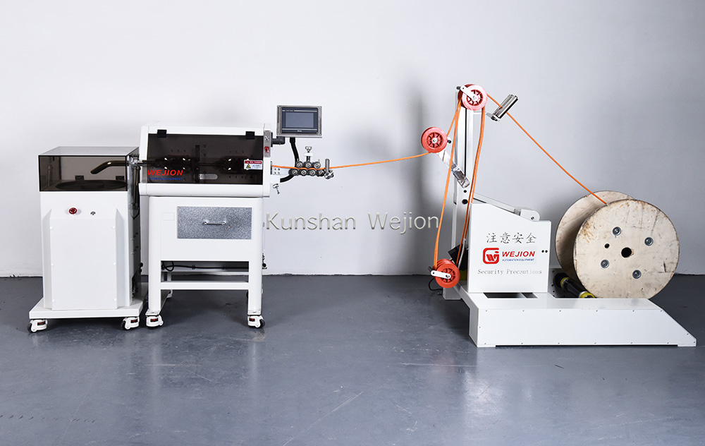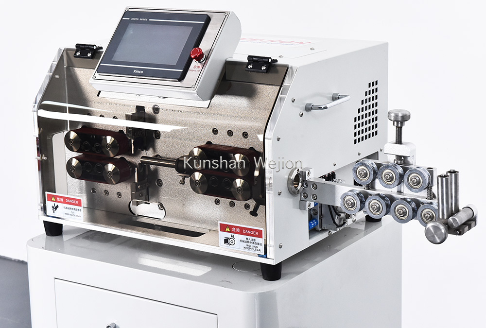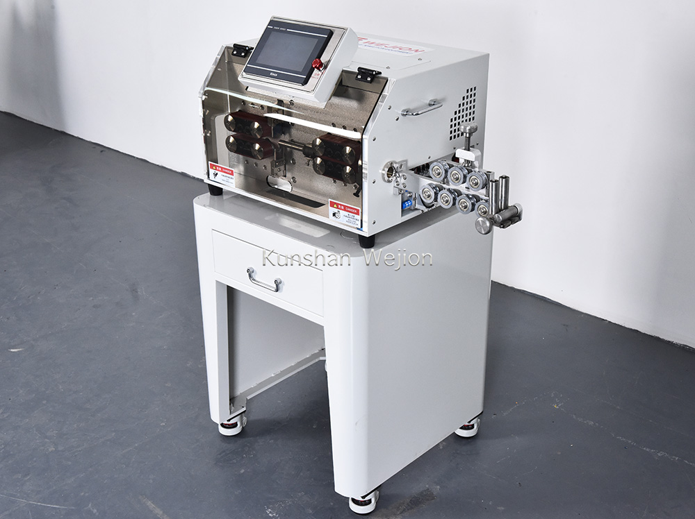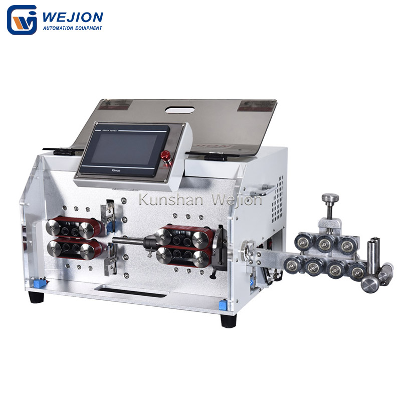全自动多芯护套线剥线机专为加工多芯圆护套线而设计,可以自动剥除外护套然后再剥芯线,可选配喷码机,可配自动收线机,加工长线时可将成品线材整齐的纳入收料盘中。