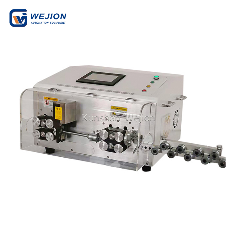 3、彩色触摸屏操作界面,参数直观易懂,简单培训即可快速操作机器;本机还有三层剥线程序,可分三层剥线,或缩短剥线长度时,最多可剥线3次; 100组程序记忆功能,可存储不同程序号中不同线材的加工参数。