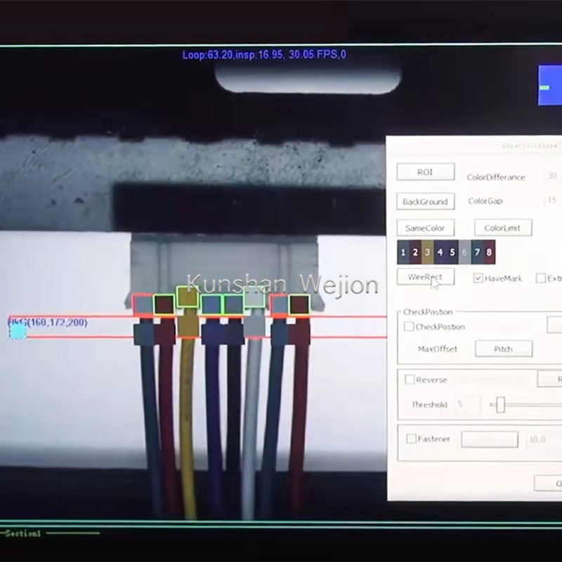系统拍摄正确的线材的图片,利用该图片作为模板,与检测时拍摄的图片作对比。来辨别产品的合格与否。