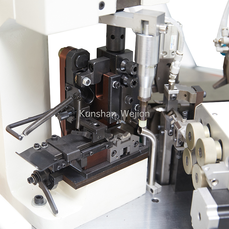 2.采用OTP卡式模具,各种横送端子、直送端子、 旗形端子机、散装端子等均可适用,散装端子可以通过振动盘自动送料,亦可根据用户需要更换为40mm行程模具。