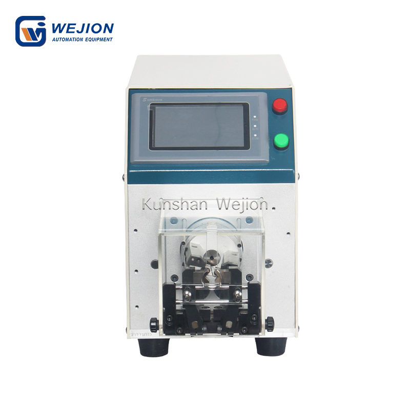 3.同轴线剥线机的传动机构采用日本NSK滚珠轴承、丝杆驱动,让运动精度保持在0.08毫米以内。