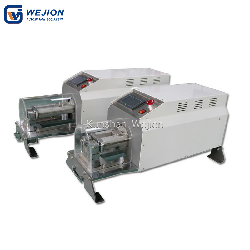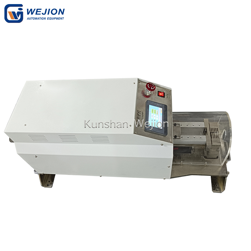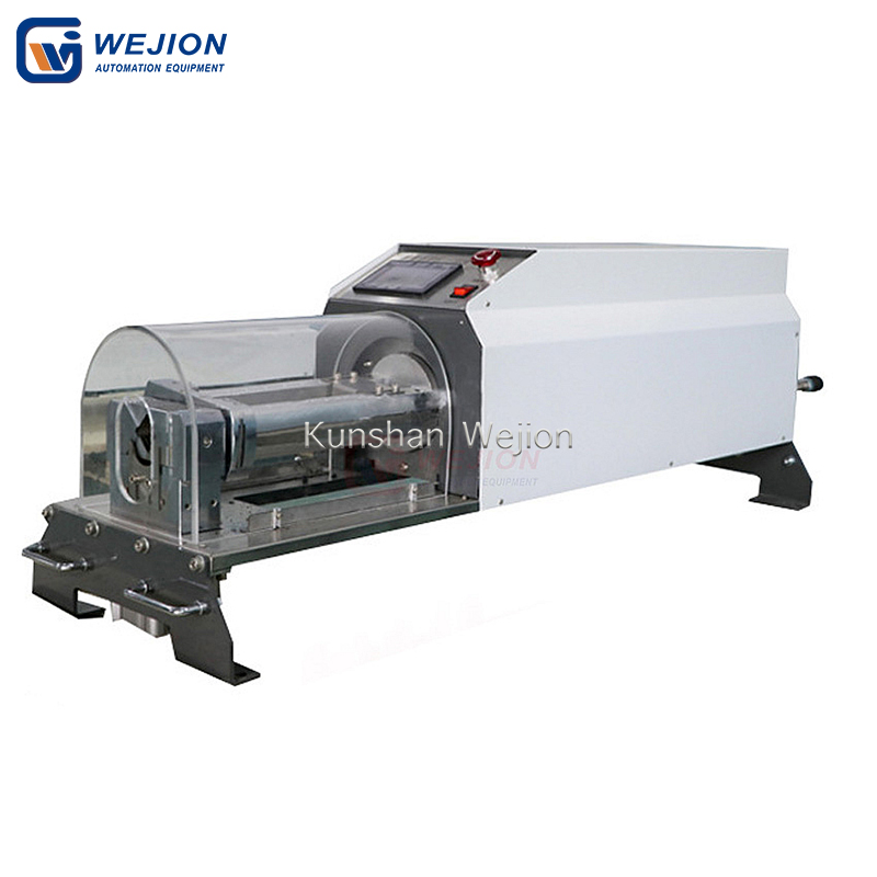 本机为大型旋转刀剥线机,适用于加工外径40mm以内的大型电缆线,旋转刀口的设计可以剥离同轴线的编织层且保证切口平整不伤芯线,大大提高加工效率和加工质量。