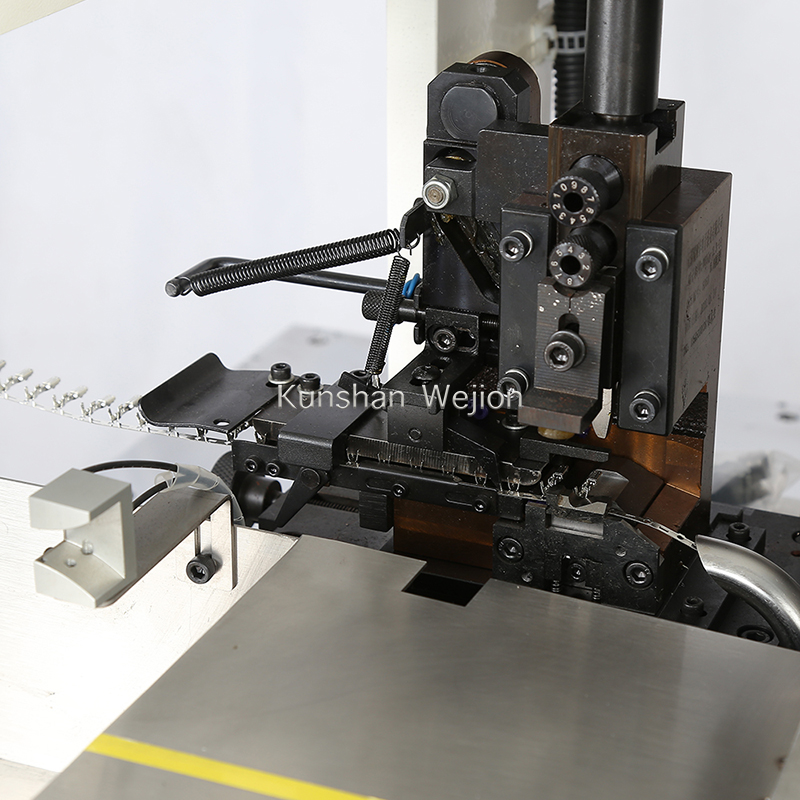 设备构成采用进口原件:伺服电机、SMC气缸、 日本三菱PLC、 日本小金井电磁阀等.人工放线,伺服自动送线,自动定位,自动压着。电脑触摸屏中文操作,易学,易用。采用伺服电机自动感应送料,压接更精准,生熟手均可操作,效率高,8000~ 10000PCS端子每小时调机采用触摸屏全自动智能化端子机采购超静音环保节能型,低损耗,