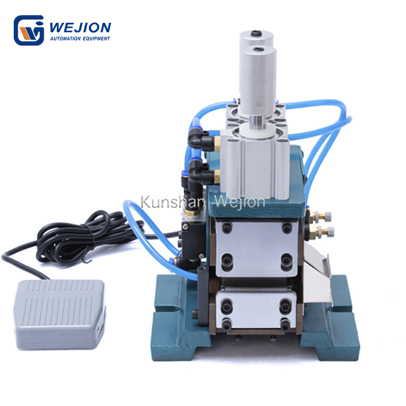 4. 另有双刀设计,剥皮与切断一次成型,增减垫片以定长度、准确、迅速,吹气装置可自动清除剥皮后所遗留之线屑。